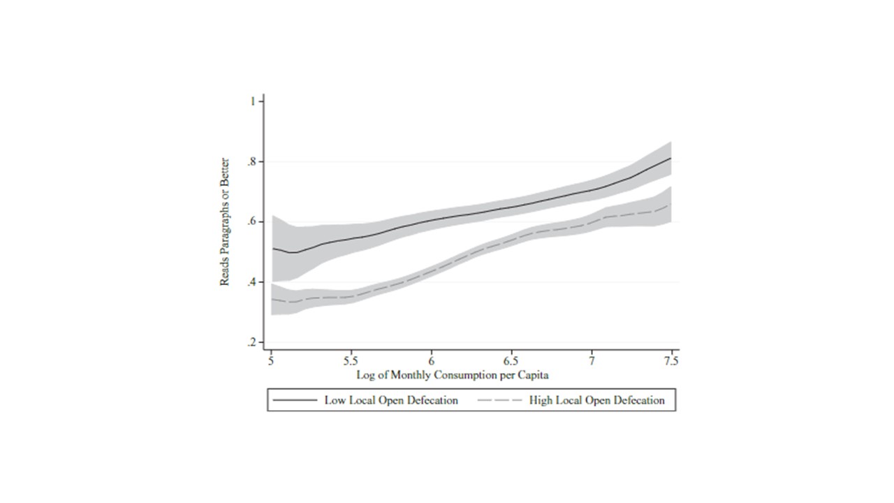 Exposure to open defecation has serious consequences for child mortality, health, and human capital development. South Asia has the highest rates of open defecation worldwide, and although the incidence declines as household income rises, differences across South Asian countries are not explained by differences in per capita income.