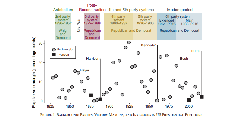 Inversions in US presidential elections: 1836–2016