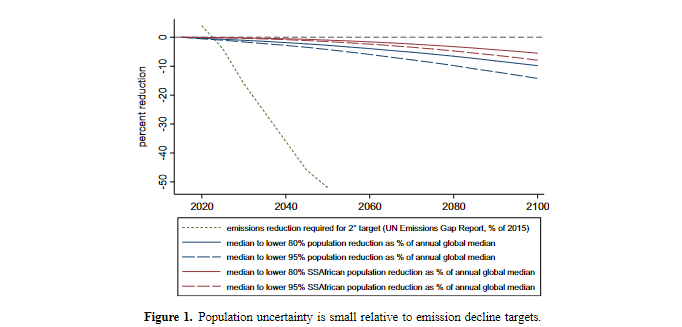 Smaller human population in 2100 could importantly reduce the risk of climate catastrophe